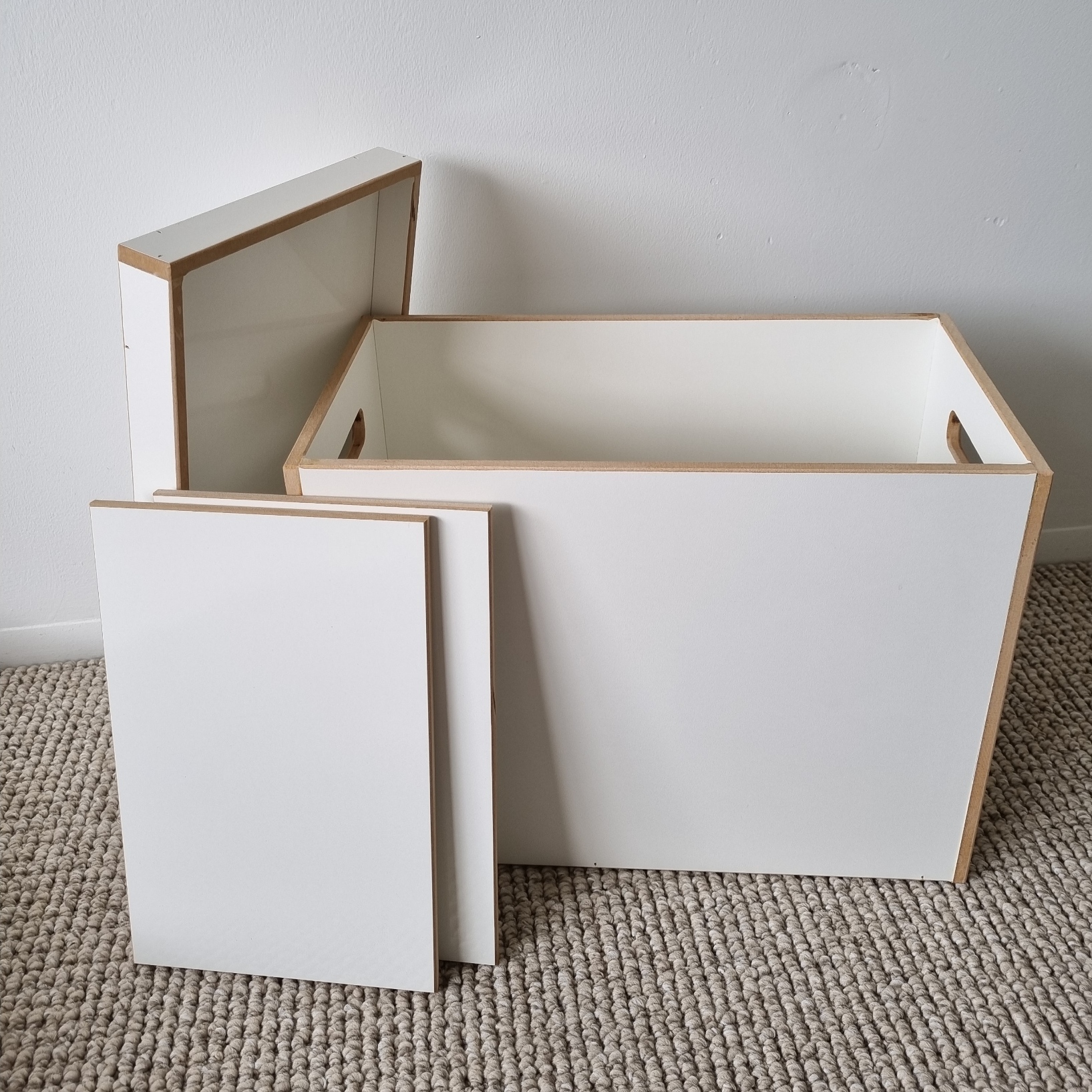 Pre-assembled boxes as pictured above are joined with glue and nails and can be picked up from the West Auckland maker.
