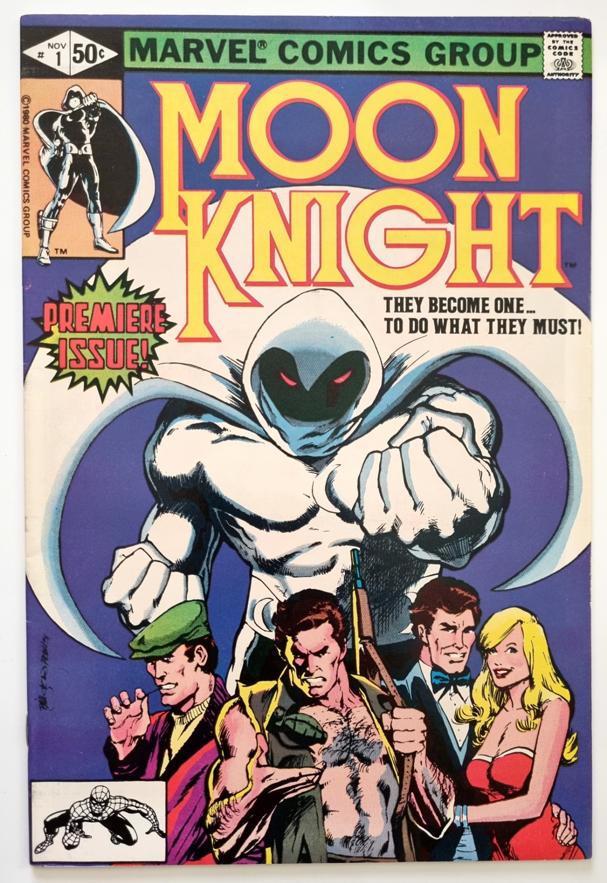 Direct Edition. Art by Bill Sienkiewicz. Written by Doug Moench. Mercenary, Wall Street wizard, cabbie, masked-avenger – Marc Spector is all of these things and more. 1st appearance of Bushman. Published November 1980 by Marvel. Raw FN+ 6.5