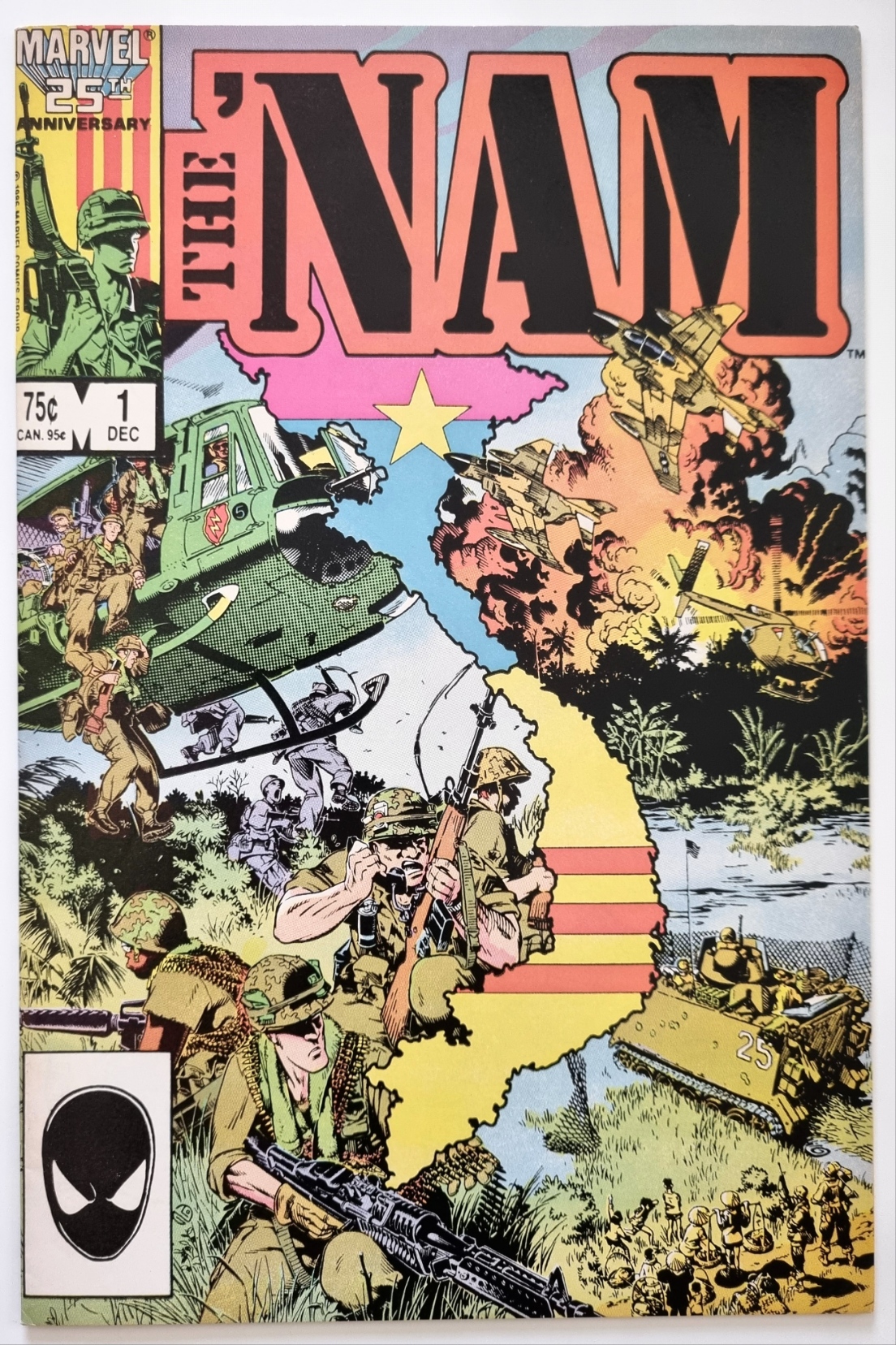 First print. Direct Edition. Cover by Mike Golden. Ed Marks and the men of the 23rd Infantry learn to survive in the steaming jungles of Vietnam. “First Patrol” written by Doug Murray, with art by Mike Golden and Armando Gil. Published December 1986 by Marvel. Raw FN 6.0 or better.